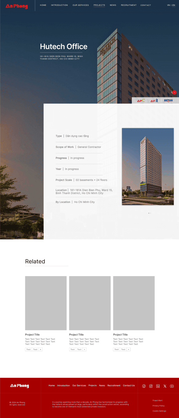 The previous website was extremely text-heavy, lacked visual hierarchy, and did not effectively communicate An Phong’s brand identity. The redesign introduces a modern, structured layout with improved spacing, fewer fonts, and a more intuitive navigation system. By incorporating a corporate yet locally resonant aesthetic, the new design strengthens the company’s online presence while making information more digestible.