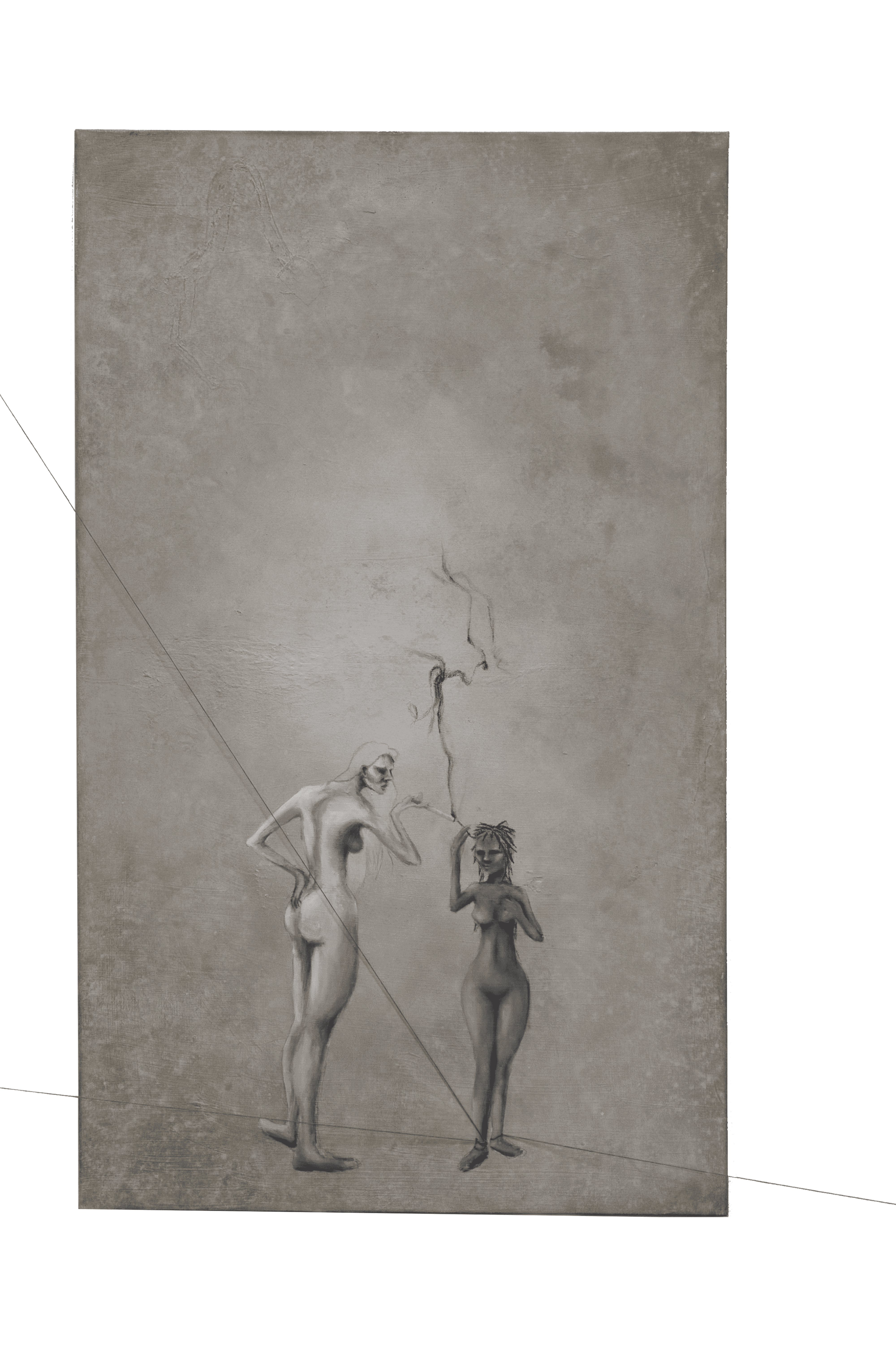 "[ ]" is an immersive installation exploring how identity is shaped, suppressed, and endured within environments marked by intersecting social, cultural, and spatial forces. Using oil paintings, 40-foot braids, and handmade clay bricks, the work engages the embodied experience of tension, constraint, and ambivalence.